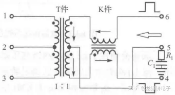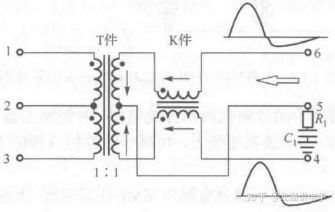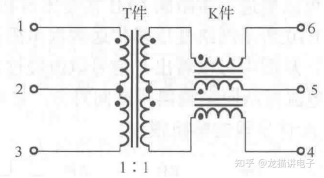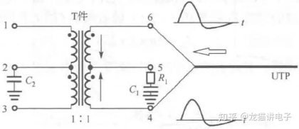 T件+K件网络变压器信号传输示意图(图源:书籍《网络变压器》)