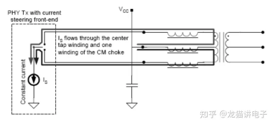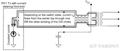电流型PHY在T件+K件网络变压器中的信号传输示意图