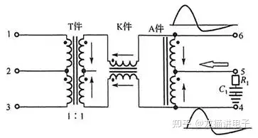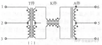 T件+K件+A件网络变压器信号传输示意图(图源:书籍《网络变压器》)