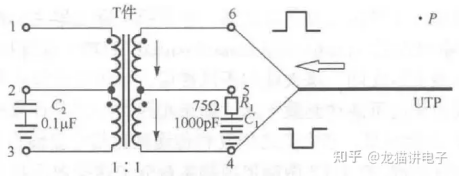 单T件网络变压器信号传输示意图(图源:书籍《网络变压器》)